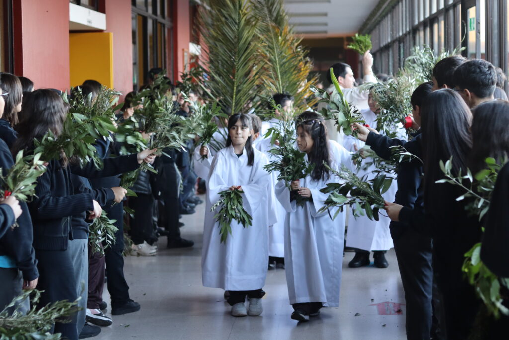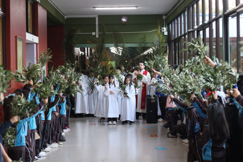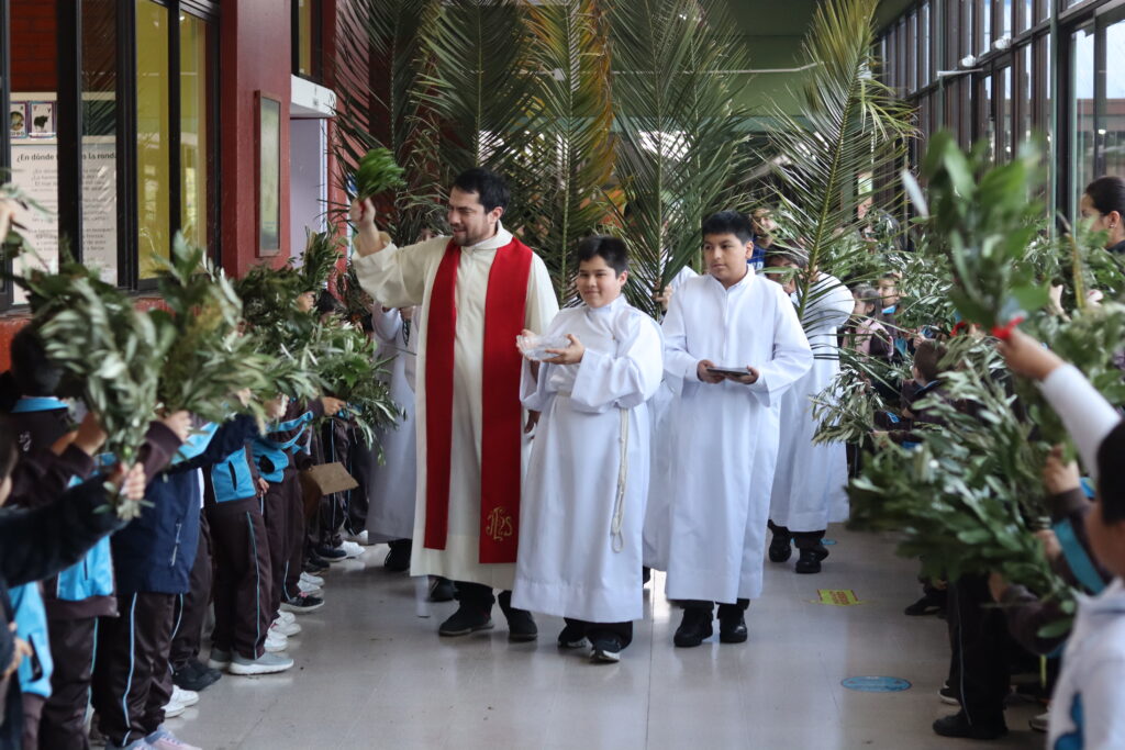 Iniciamos nuestra semana con la Bendición de Ramos, donde nuestro capellán, el Padre Carlos Gonzalez, recorrió los pasillos de nuestro colegio desde Pre Kinder a IV medio acompañado por el grupo de acólitos. Rememorando de esta manera, la triunfal llegada de Jesucristo a Jerusalén.