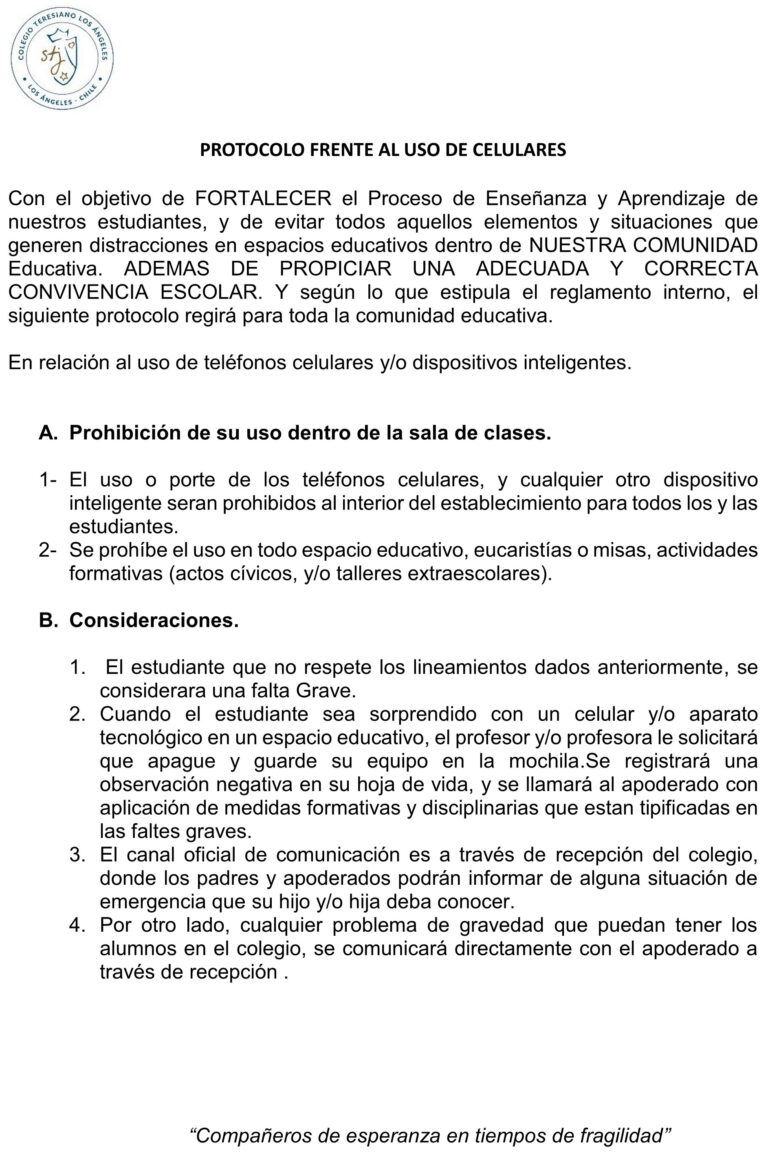 • Protocolo uso de celulares